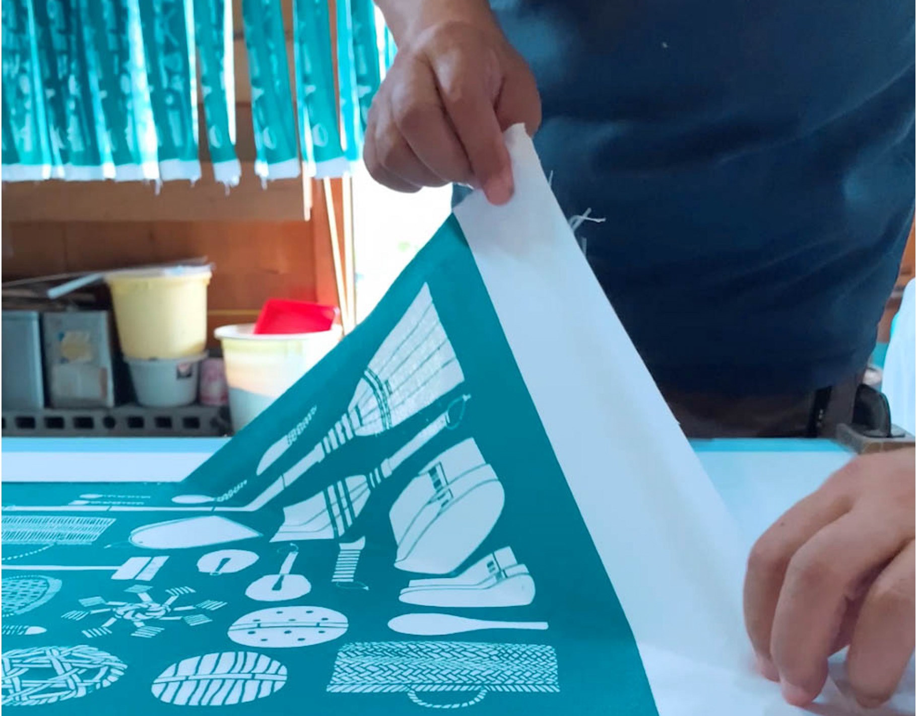 めぐる手捺染荒物手ぬぐい